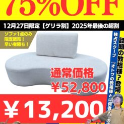 【2025年の感謝をこめて´-】 \ついにきた‼️/ 12月27日(土)限定! 2025年最後の【ゲリラ割】開催 今年最後のゲリラ割は…とにかく安い‼️✨ 【ソファがなんと…】 \\75%OFF …