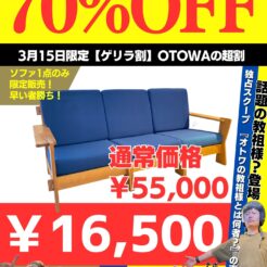 【3月の超割】 \ 3月のゲリラ割 開催‼️ / 3月15日(日) 10:00~ ※1点限定・早い者勝ち ⸻ 対象商品:3人掛けソファ なんと… \\ 70%OFF‼️ // 「本当にこの価格でいいの?」 …